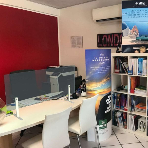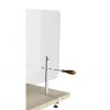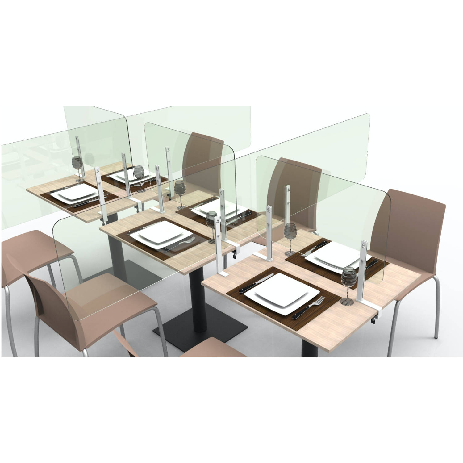 Un pannello in PMMA trasaparente in varie misure sostenuto da supporti a morsetto o appoggio.